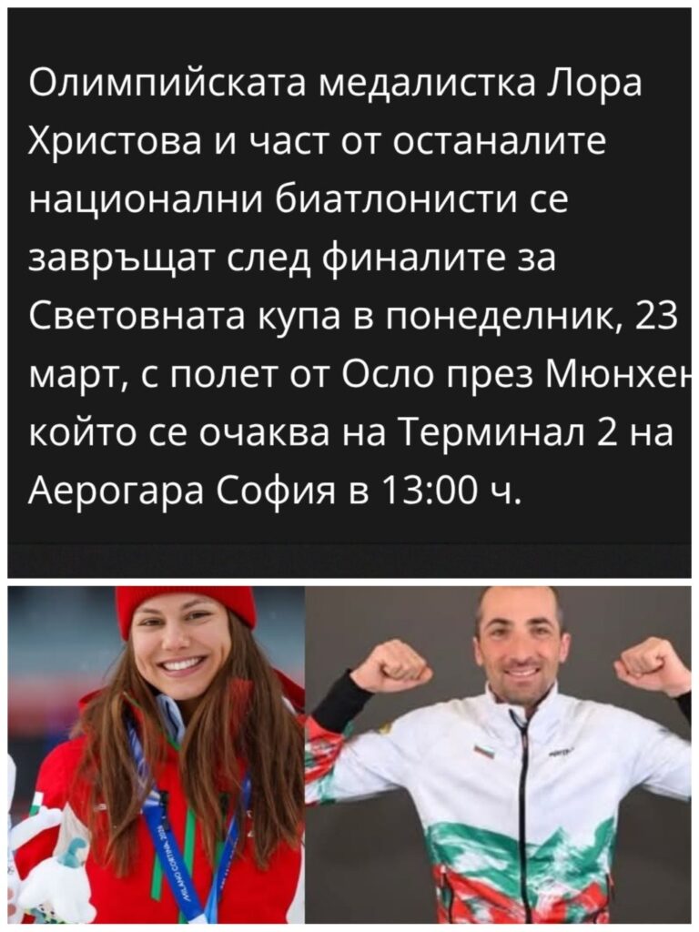 Олимпийската медалистка Лора Христова и част от останалите национални биатлонисти се завърнаха днес в София с полет от Осло през
